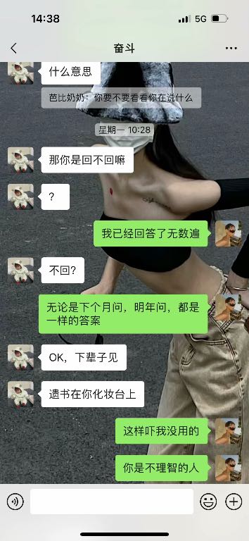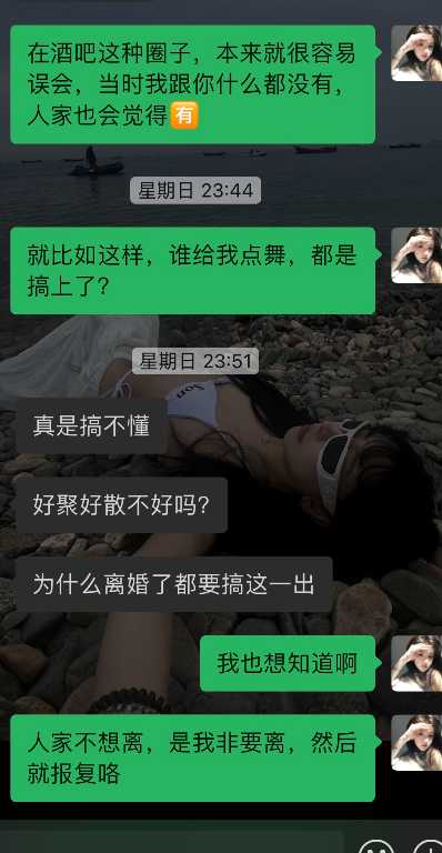 我跟老兄弟聊几句天就是出轨要家暴我?开玩笑发个擦边表情包就是发裸照?几万块都买不到我一张裸照啊,在想什么兄弟?至于为什么他清楚我的社交,都是我主动说的,抢手机套话,我说手机拿去吧随便套,有一点问题我把屎吃了,客人顺路送我回家,提前报备过的我说我搁楼下呢,不然能让你看到?星途公寓是我自己租的宿舍,不然能让你知道房号?特么木薯DJ那些5年前的俩前任也拿出来写,愣是凑出来几个男主写得有头有脸的给你鼓鼓掌哈,拿我手机乱发信息截图伪装成我发的,拿我手机套话套不出来就动手,都拿刀架我脖子上了,没有我也得说有啊,什么玩意儿人家找上门,加我微信叼我的客人多了去了。