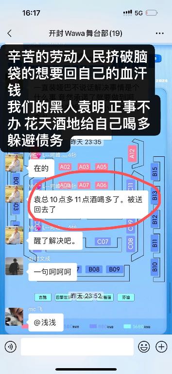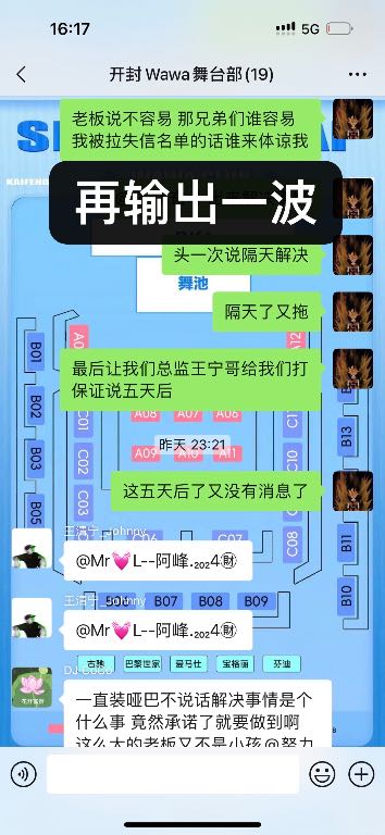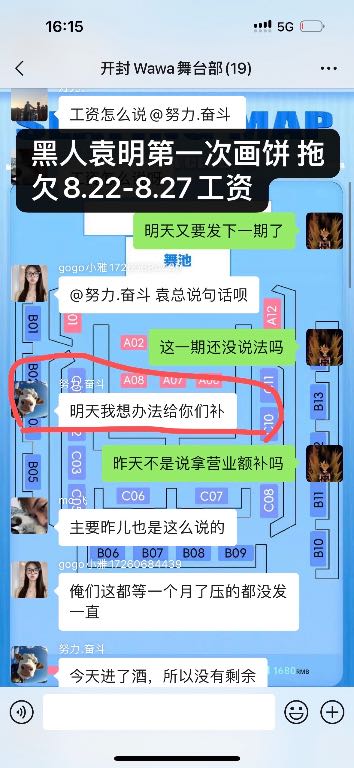 舞台部兄弟们现在已经离职一个多月了每次要工资就是没钱!!