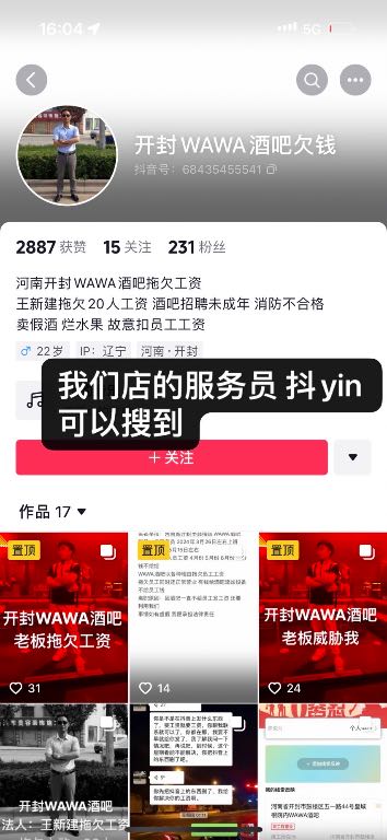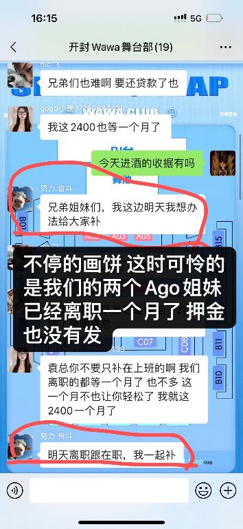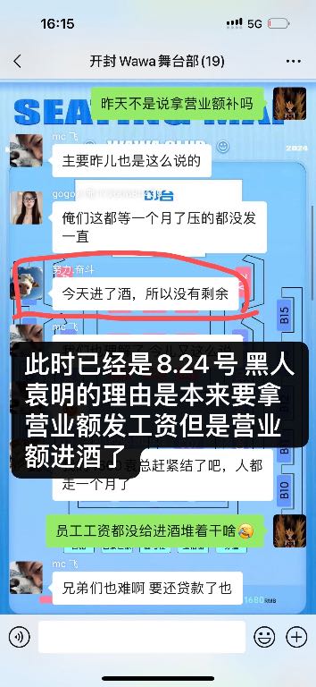 开封鼓楼区 皇城根 wawa 酒吧拖欠员工工资不发每次要工资就拖 !
