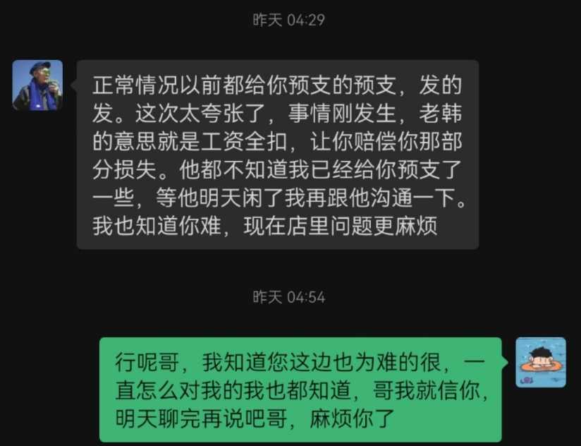 店内管理混乱,督导什么都要管一下,凭自己是老板好朋友啥事都要插手,六月底装修期间,舞台总监留店帮忙盯装修大事小事都管,老板和老板娘自己跑出去玩,买几千块钱衣服,装修期间一分钱工资没有给过,开业第一天,给舞台总监给歌单让按照歌单打,给了许多限制,随后客人反向不好不去找自身原因,然后开除舞台总监,一个月后找不到人又返聘舞台总监,随后最精彩的操作来了,店内调音老师的不专业以及音响厂家做工问题,导致音响损坏,要用舞台总监工资来赔偿音响,舞台总监两个月工资都要扣除赔偿音响,还有刚装修完时招聘的销售工资也没有发,更别说舞台,给多少钱办多少钱的事,给那么点工资还要让舞台做业绩,做不够每天标准还要钱罚单