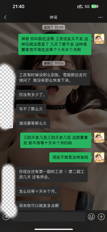 避雷 避大雷 某某老板 欠薪不还 招聘信息与现实不符 从一开始就是哄骗你过去 然后天天给你画饼 现在说好的离职工资几天内几天内给你结清 都是在给你画饼 离职工资多次沟通无果 无数个明天给 隔天给 几天内给 直到26年1月22号都尚未结清 前面诓骗给我叫我删帖 到现在信息甚至也不回 甚至离职到现在也未曾领到一分钱 毫无诚信可言 希望各位同行避坑 切莫助长这些恶行 维护大家的利益 杜绝黑场 以上内容均是本人亲身经历 如有虚假本人愿承担一切法律责任