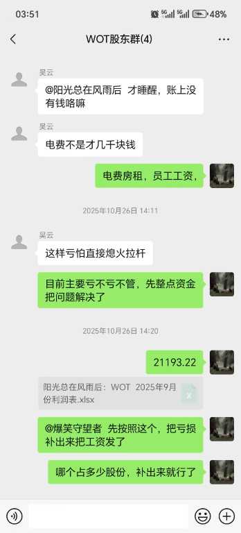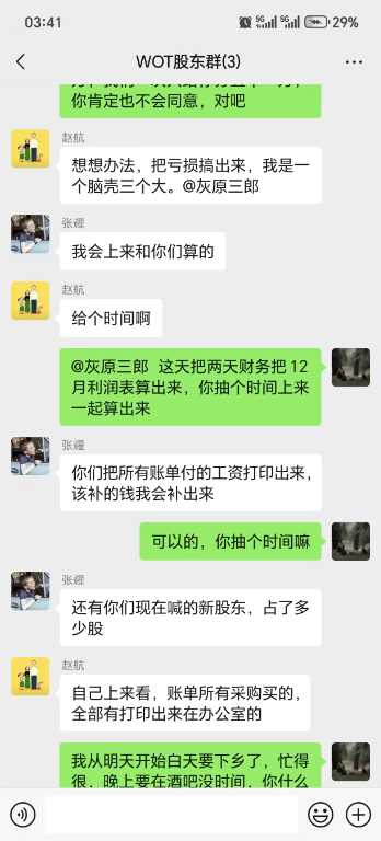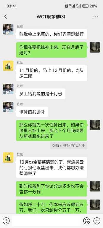 一:本人赵航,李玉贤,张跃,吴云,共同于2025年9月14日承包WOT经营权到,2025年12月31日,因张跃,吴云,(占承包股百分之50)二位未出资,共同承包期间亏损费用,以上二位承包股东失联,导致公司经营出现状况(原承包期限定位2025年9月14-2026年9月13日)张,吴二位股东,背弃合同条约,无顾失联,本人赵航,李玉贤,二位已经把共同期间,亏损占股比例的百分之50出资解决,我二人的占股亏损,我方已经走法律途经,资料提交至威宁县人民法院,法院已经立案处理。