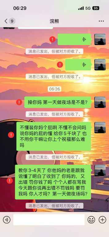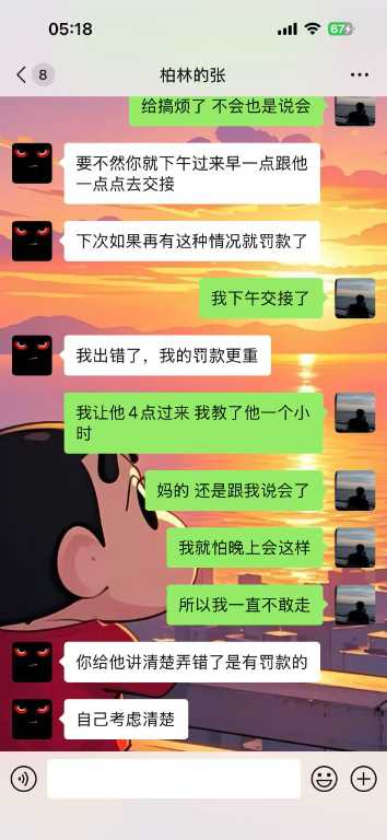 教你3-4天了你他妈的老是跟我说懂了明白了收到了你妈的,又出错 罚你钱了吗个个人都在骂我今天跟你说再出错不罚钱吗 要罚我吗 你人才吗?第一天做夜场吗?