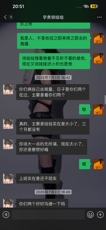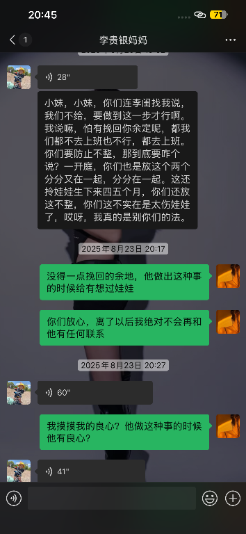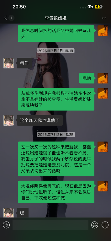 今天男主人公挺炸裂的渣男系列,这份迟来的爆黑贴给夜场和我一样眼瞎的姐妹警示,其余就当吃瓜就好,男主李贵银艺名扎克(Zac)我们2021年在禄丰银河酒吧认识,然后没多久就在一起了,后面在一起没多久就出轨,因为我是本地的,有朋友在酒吧上班就给我说看见有个女的去等他下班,然后就一起走了,后面就打电话问他,他也承认了,然后就分手了,后面他回去以后就各种求我保证没有下次我就信了,就煞笔似的和他和好,没多久他被下回昆明去了结果又出轨,骗我说出去和朋友吃饭,结果一吃就消失了,打电话不接,发消息不回,第二天给我来个手机没电了,我又煞笔的信了,又过了没多久他又游戏撩妹撩骚,被我发现,然后去私信了那女的,人家给我说不知道,是他一天发些骚扰信息给人家还给我了聊天记录我把记录转给他就吵架分了,然后他又一直打电话发消息来道歉,大概一百来个电话我就又心软,原谅了他,这里不确定他吃饭那时候就出轨,是后面他才承认的,这次后面他但是真的改了,没在乱来,大概好了一年多然后我想着我年龄也差不多了,就提了说结婚,然后就因为彩礼婚房啥的各种吵架就烦了就分了,他又各种来道歉我没见也没理,就跑外省去了,他还是随时打电话发短信来忏悔啥的,我也没理,大概分了半年左右我回来本地继续上班,有天去酒吧玩发现他又在那了,就问了下,第二天半夜他又打电话来说喝醉了,让我能不能去接他,我就想的他不是本地的啥的心软就去接了,然后呢送到楼下他就不让走把我拉去了宿舍各种卑微的道歉,求我把他微信加回来,就特别卑微的那种,我从来没见过,然后就特么的又心软的和好了,和好后无聊玩他手机看见聊天记录这煞笔玩意一边来求我和好一边又和同场的女j睡了,还特么的染病了过给我了,我又傻乎乎的想的是没和好前干的,就吵了几句就没说啥了,后面又在一起一年多吧,结果意外怀孕了,就商量结婚,各种都谈好了,吃了饭谈结婚接亲那些就因为六条烟我家要十二条他家不给只给六条就谈崩了,然后我家里就不同意我和他在一起了,就把孩子打了嘛,然后我自己犯贱,放不下他,觉得孩子打了对不起他,就跑去又和他在一起,因为结婚谈崩孩子打了这个事情两个人心里都有芥蒂,后面在一起只要谈这个就会吵架,后面在一起的一年多我两都不说这个事情,可不幸还是发生了,我又怀孕了,吃了药还中的那种,开始他就说不要的,我考虑我前面打的到怀孕还没一年,怕后面生不了就说我要留,后面他也同意了和家里说了嘛,然后一堆事情就来了,我怀孕期间上不了班,又为了和他一起上班不异地,(这里说明一下,我和他基本都在异地)去学麦和碟差了💰又没上多久就怀孕了,前面工资都还钱去了,没存什么钱,后面怀孕都是找他拿,每次产检啥的找他拿钱就各种骂,整个孕期基本都是三天一大吵两天一小吵的,又因为彩礼啥的各种吵,本来应该才怀孕就结婚的,然后他俩就一直各种推辞没钱给彩礼,就一直拖着没办,也没给,直到我要生的头几天才把钱转给的我爸,转给我爸就来和我说彩礼给我家了他家就没钱了,生孩子也拿不出钱,让我找我爸借我也去了,我爸同意他又让我爸把钱转给我别转给他,我爸不同意,他没钱我又要生没办法他才同意说转给他的,生孩子前要买孩子东西的钱他也不给,还是我找我姐借的,最开始是她让我自己想办法他没有就不管了,后面我找我姐借了后他说他还现在也不认了,整个孕期都是威胁我说不给孩子检查费啥的,特别我八个多月的时间吵架他还说让我去打了,要生的时候查出我肝功能异常,要住院找他拿500住院费,他在那说没有,让我要生生,不生算了因为孩子我都一直忍着,我怀孕期间也还是上半个月休半个月不上班也不说来照顾我就自己待昆明他姐家闲着,就我住院都是过了两三天才来的,说什么不是还不生嘛,过去也没啥事,饭那些我爸他们会送去给我,那会医生和同病房的都一直在我我老公呢,怎么是我一个人,那种感觉,生了他还是老样子,一天在那说让他妈在那照顾我,他没睡够,要回去做饭,一顿饭做一天的那种,中午回去,要到晚上九点十点才能见到他,后面也是我爸做了送来给他们吃的,吃了碗都是我爸拿回去洗的,坐月子,期间也是那种直接叫不醒,我自己忍着伤口起来照顾孩子,人家第二天还来个你怎么不叫我,他自己姐夫在旁边听了都说我睡旁边都听见了,你还听不见,你是睡的多香的那种,我出月子他就出去上班了,我就自己和他妈妈待在他家,孩子两个月因为户口要回我家,我回来了两三天就催着我回去,说什么他妈他们要下地干活,让我去接他姐家的孩子,逼着我回去,我自己带着孩子,头天他妈还说来昆明接我,帮我抱孩子,等我回去那天又来个车费划不来不来了,让我姐她们送我,搞得我姐她们的钱不是钱一样,孩子一个多月两个月吧,我熬夜习惯了,加上睡眠不好,又带孩子起不来,她妈就不干了,说我一天躲房间里也不起来吃饭,我提前就和他妈说过了,我起不来不用叫我,转头就打电话告诉她儿子,结果就是他又各种打电话来骂我,不起来煮饭看他姐家的孩子就不给我和孩子生活费,我真的受不了了,就说我要出去上班,让他妈带孩子,人家来个孩子太小了,带不了,家里农活多,没空,好嘛我就让我爸我妈给我带了,然后他就知道威胁不了我了又来骂我爸了说我爸多管闲事,当初说不管我两的事的,我想说难不成我爸要看着我去死吗?因为