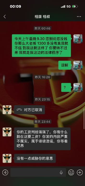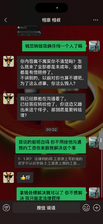 所有跟老板(相康)的聊天记录我将一字不漏公布在下方!