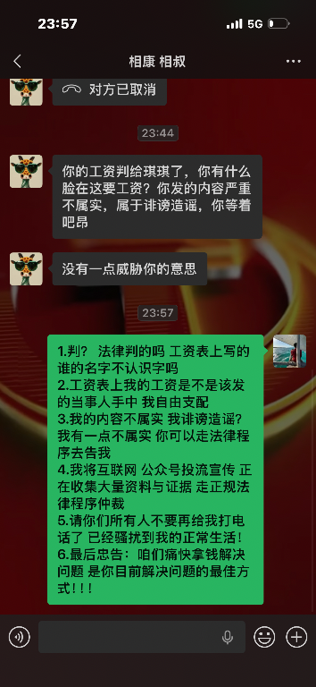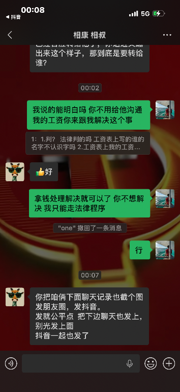 我将采取走正规法律程序 劳动仲裁.等… 所有聊天记录以及证据正在大量收取中…