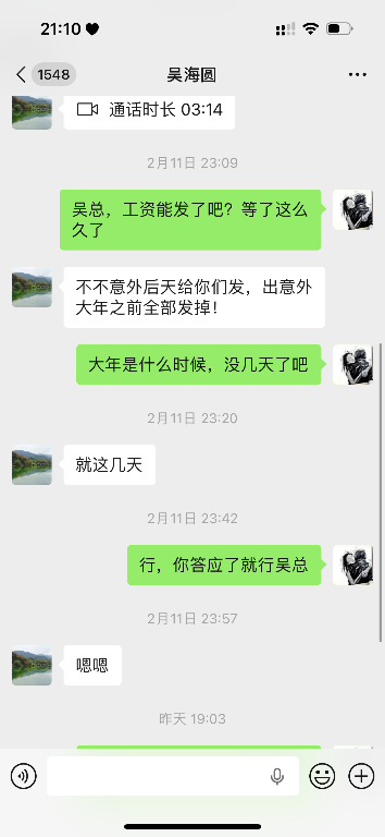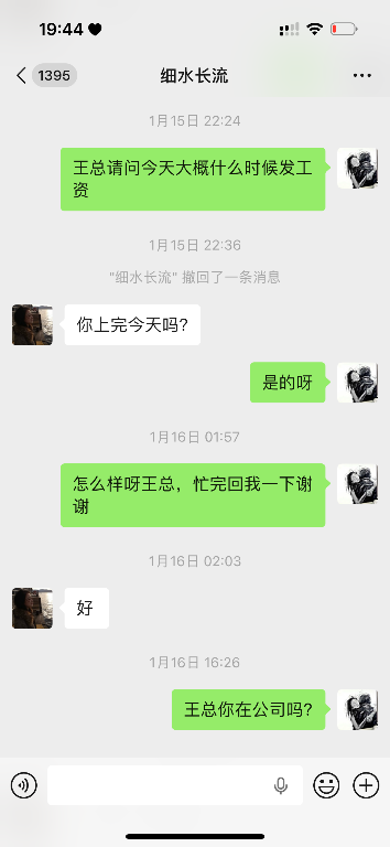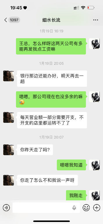 本人在该酒吧工作两个半月了,一直没有正式发过工资,每次到了发工资的日子就是只字不提,去问她就是说过两天,过两天,要么就是先发两三百块钱,本人也是看在生意不好体谅下的心态,很少追问过。直到后面辞职了,老板当面说好了离职的时候给我结清工资(约15000元)离职那天又让我等几天,她的贷款马上下来了。之后等我离开以后基本就是不回信息了,一个老板 一个老板娘都承诺了发工资的时间,承诺了也不发,就是不回消息,还有其他同事也一样是这种情况。目前酒吧每天还是正常营业