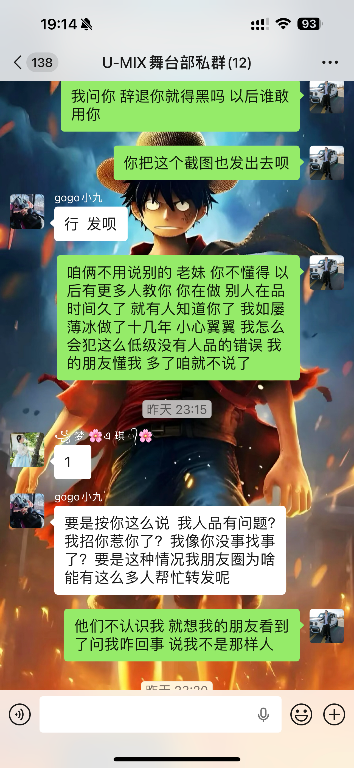 说我不该被她这样公开诋毁我人品