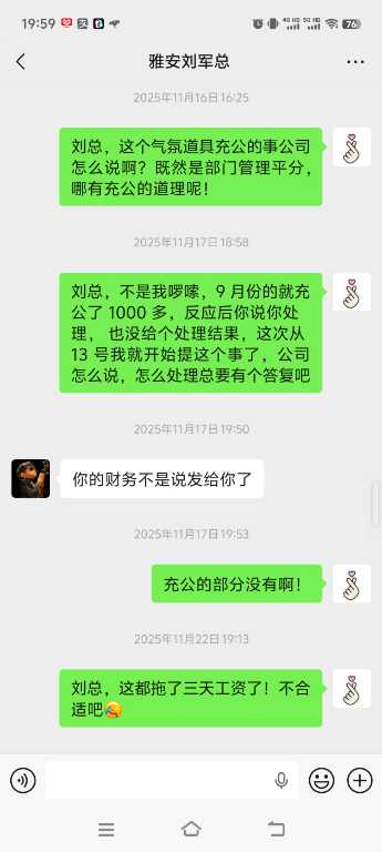 雅安panda,本人正常离职!付个工资就像挤牙膏!到后面直接,总经理,老板消息都不回了!有图有真相
