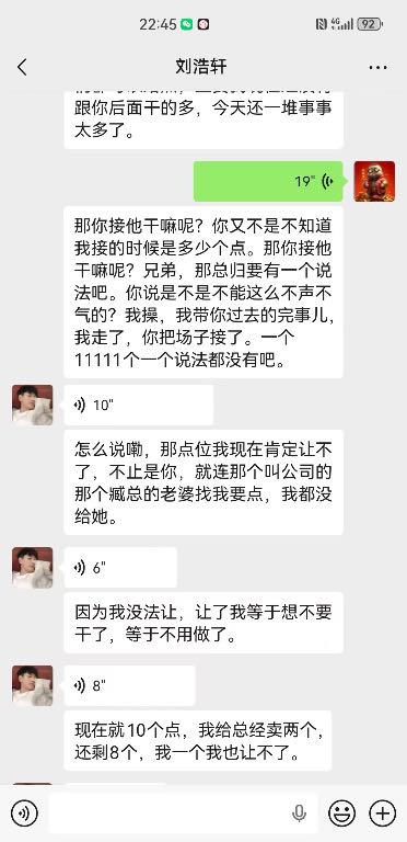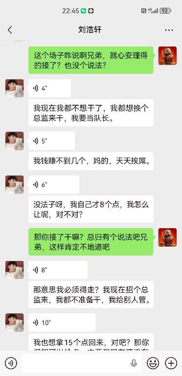 因刘浩轩违规使用未成年女孩,本应面临罚款处罚,部门副总为保其免受责罚,多方周旋将此事压下。可未曾想,刘浩轩毫无感恩之心,在被保住后非但没有收敛履职,反而私下擅自翘店离岗,将所有工作烂摊子尽数留下,毫无责任与底线可言。