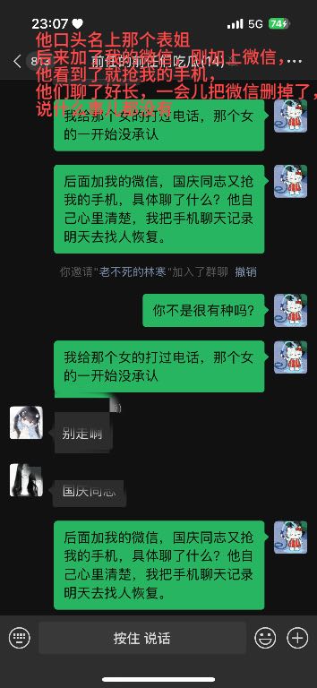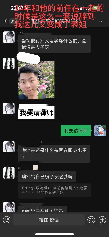 他说那是他表姐,过段时间要结婚,他要回去 我抽脂完躺在酒店的那几天,他说他表姐结婚他要过去,结果他名义上表姐给他发的微信拍的照片,新郎是他 跟他前年的前女友说是他表嫂 跟我说是他表姐
