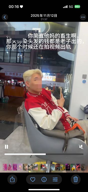 到后面我原谅他了,但那个期间他一直在出轨 我记得很清楚的是去年十月份我去漂头发接头发,他要跟着一起钱都是我出的那个时间,他还在出轨,在抖音上给女生b信息,说他要染头发了,当时我还坐在他的旁边 蒙在鼓里像傻逼 当天晚上还把人家的狗给遛死了,我还得给他擦屁股